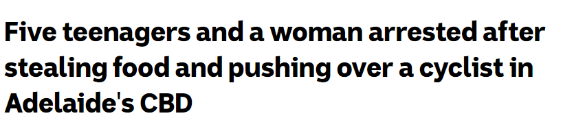 标题: 阿德CBD有6人因偷东西吃和推到行人被捕!5名青少年和一名成年女生将被起诉!
