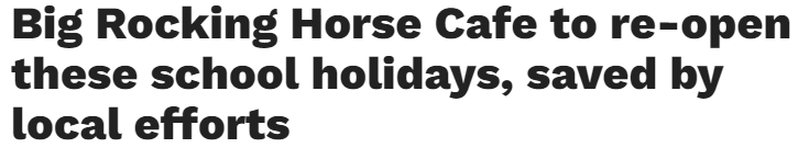 标题: Big Rocking Horse Cafe筹得重建款,将在学校假期前重新开业!