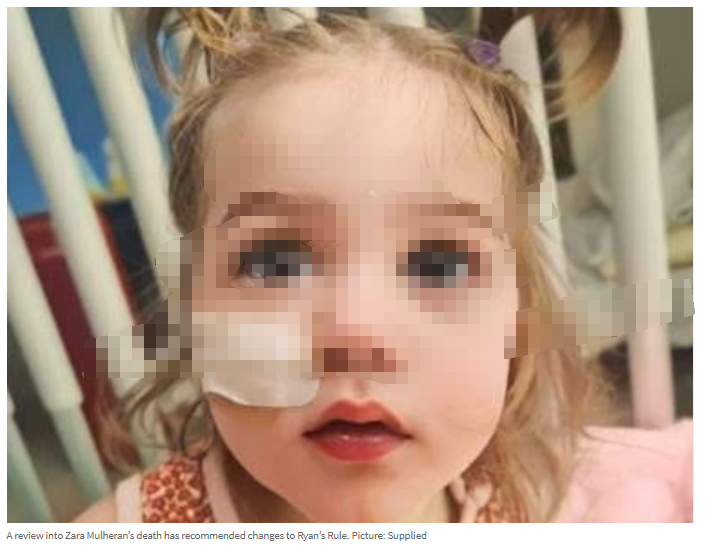 《The Courier Mail》此前披露了Zara在一个月内病情急剧恶化的过程,她的母亲Carly Mulheran在看到女儿脸色发青后援引了《Ryan’s Rule》。