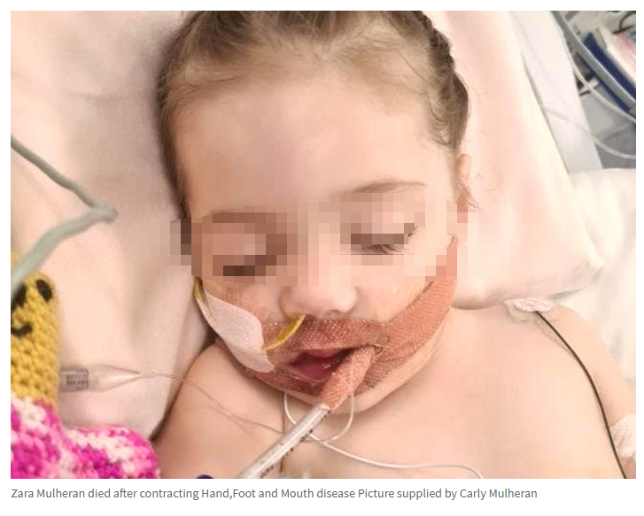 今年早些时候,20个月大的Zara在昆州儿童医院不幸去世,此前她因感染手足口病而两次心脏骤停。