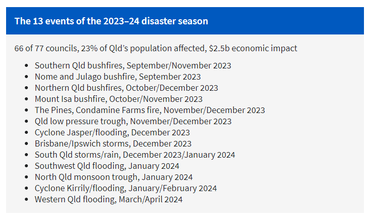 2023-24年灾害季节的13起事件:昆州23%的人口受到影响,经济损失达25亿澳元