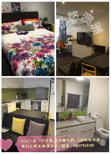City二室一厅公寓,6月初可入住,230每周包水,步行至阿大,南澳大学,详情请联系:0402958188