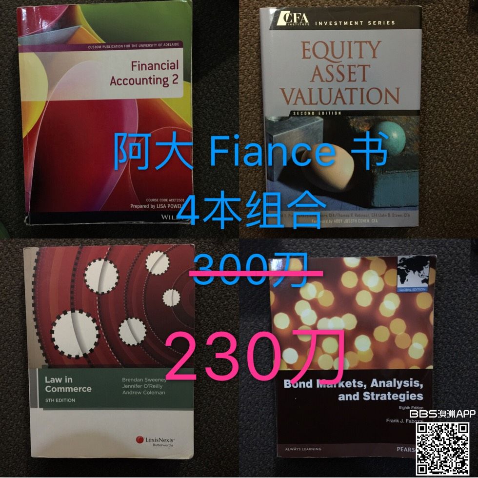 Financial Accounting 2 Equity Asset Valuation Law in commerce (5 edition) Bond Markets Analysis and Strategies 语言班必备:Collins 英英字典 扫微信二维码 或 加微信号:elegant 记得备注 BBS买书 买书 ...