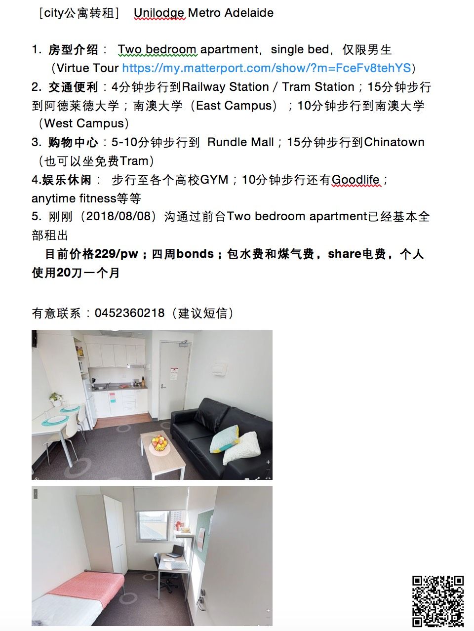 【city转租】unilodge metro adelaide