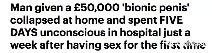 英国那些事儿 今天,每日邮报报道了一个悲伤的故事… 男子装上5万英镑的仿生jj后第一次啪啪啪, 结果一周后在家昏倒,在医院整整昏迷了5天 他在医院昏迷了5天… 女友一直守在他身 ...