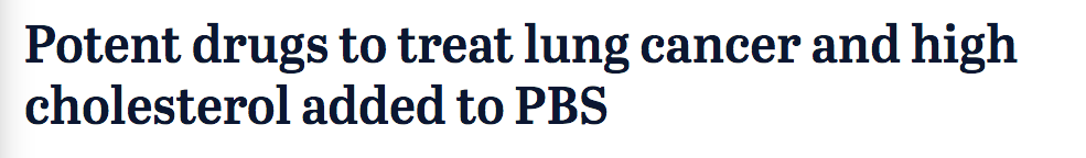 喜讯!喜讯!药物福利计划PBS又添新药啦! 据报道,澳洲政府又宣布将两种药物列入PBS,晚期肺癌和遗传性高胆固醇患者从11月起就能享受亲民价救命药! 该药物原本售价为一盒$630,每年要花费患者$8000, ...