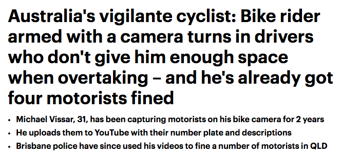据悉,有这样一位骑着自行车的“治安管理员”用自己的镜头记录下了司机们的道路违法行为并上传到了Youtube,而警方也意外的收获了这些“道路交规违法”视频对司机进行了罚款。 更有甚者打电话威胁Vissa ...