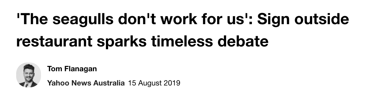 据报道,澳大利亚的海边,经常有成群结队的海鸥觊觎着人们盘中的食物。 如果食物被海鸥叼走了,让店家承担责任是不是有些无理呢? 另一名网友则认为,顾客不应该期望餐厅帮他们更换食物。 “我觉得更可笑 ...