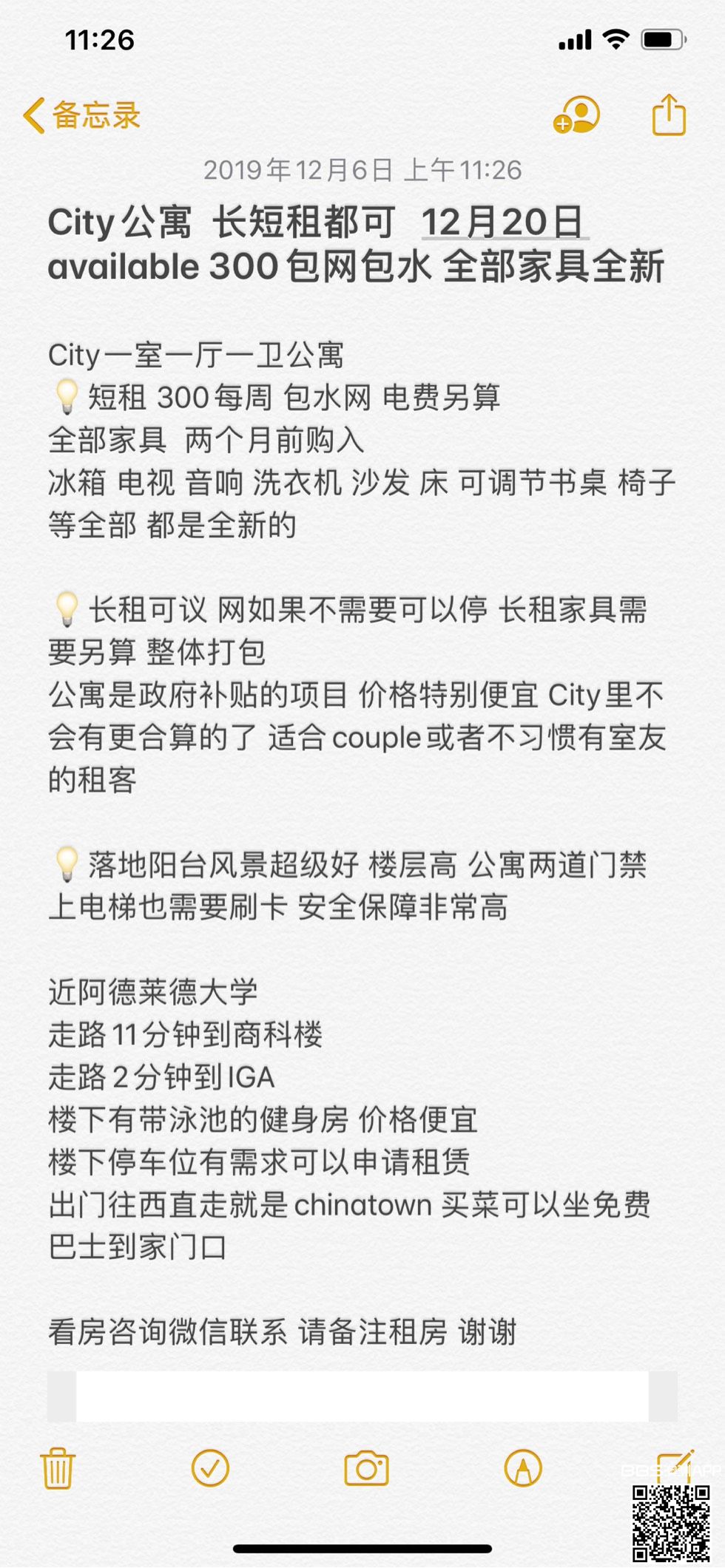 City公寓出租 一室一厅