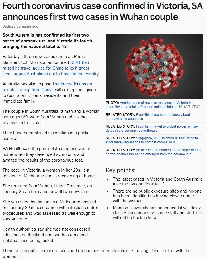 南澳确诊首2例!南澳确诊病例,于1月21日抵达阿德莱德, 寻找1月21日南方航空CZ663从广州到阿德莱德的旅客。 据SA Health消息,他们出现症状后,自我隔离在家,直到化验结果确认。 寻找乘坐1月20日南航CZ66 ...