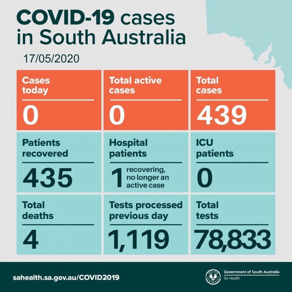 南澳今天继续零新增!零活跃病例(Active case)! 截止目前,全澳累计确诊7036例,死亡98人。 新闻来源:The Sydney Morning Herald