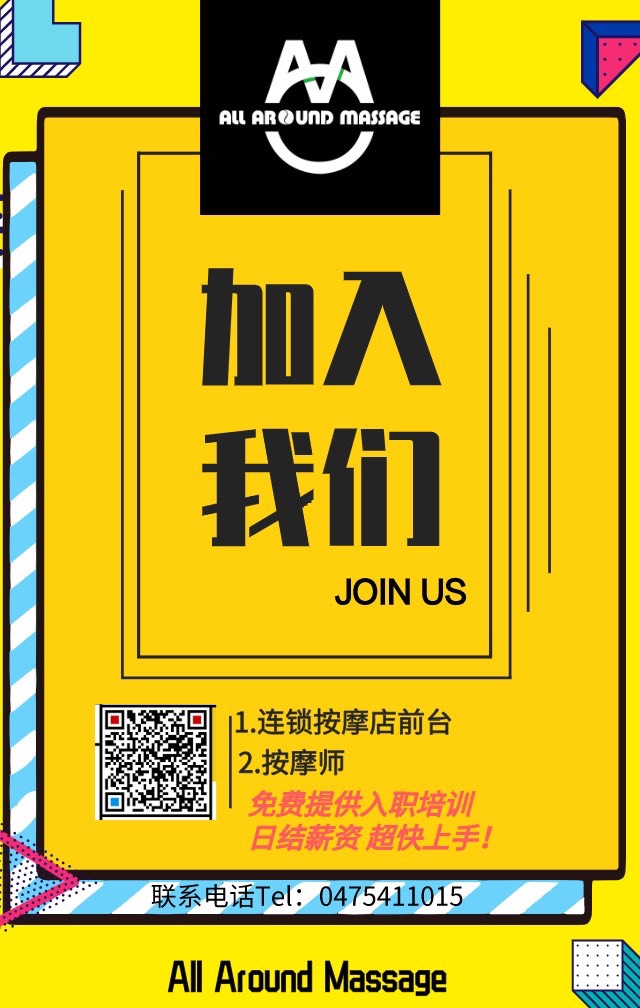 阿德莱德大型连锁按摩店(商场店。绿色|安全) 扫码咨询工作岗位,诚心邀请您加入我们的团队 日结薪资!!! 快速上手!!! 扫码时请备注。谢谢🙏