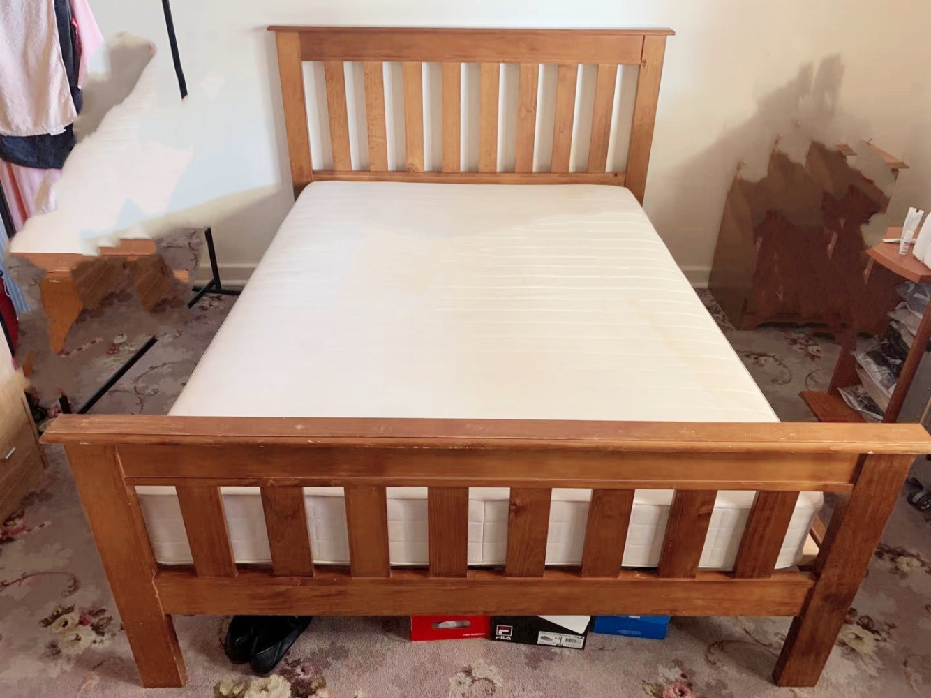 实木双人床加床垫 $100 跨州搬家大量for sale 电话0410787688 微信Lover85440057