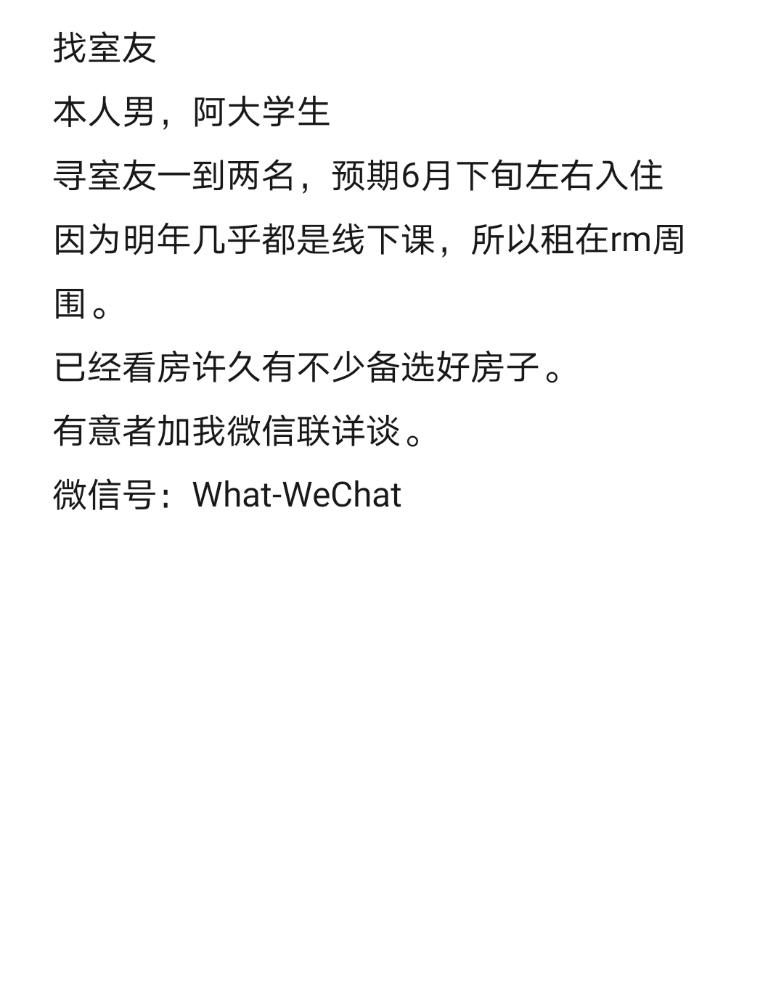 你好我也在找室友,微信MikeDavid-bi1996