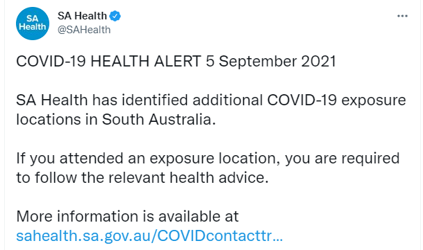 SA Health新增了疫情暴露点!