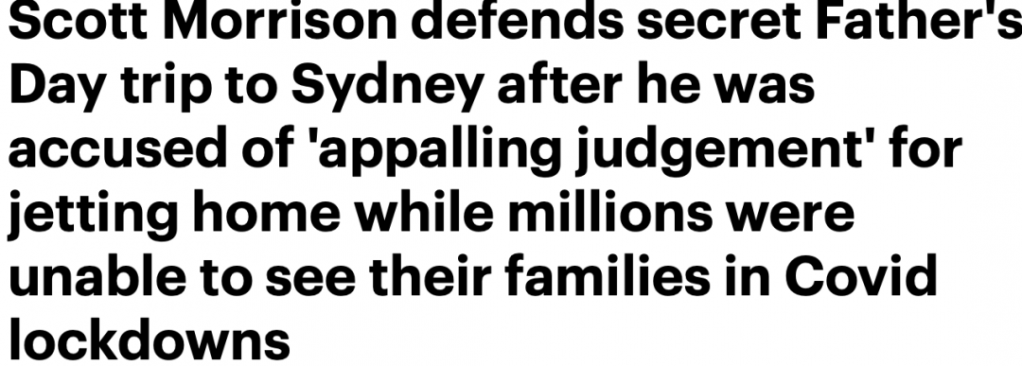 莫里森父亲节期间不顾封锁往返悉尼,堪培拉两地!引发争议!