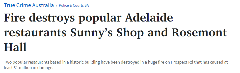 突发! Prospect一场大火烧毁了阿德莱德两家备受欢迎的餐馆!