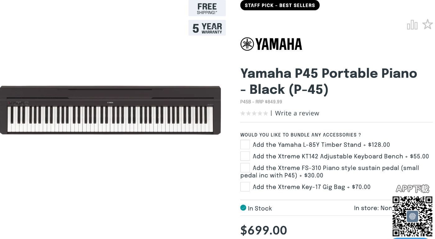 出全新Yamaha P45B 电子钢琴 可调节琴键 还有配套琴架 可调节高度 可以自取 地点在5076 Athelstone 这个区 或者也可以送货 适当加一点运费 现在是560 送琴架(不议价了 是全新的)谢谢大家 请短信联系 ...