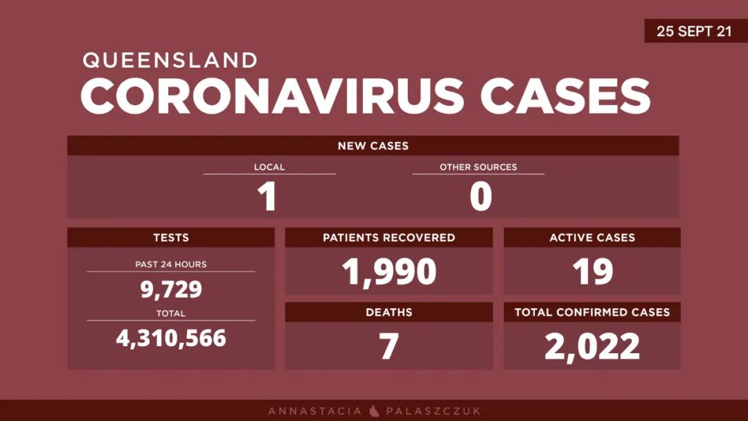 昆士兰过去的24小时记录了一例本地确诊病例。 该病例是一个与Sunnybank集群有关的家庭隔离的年轻儿童,在居家隔离时发现。 图文来源:couriermail原文链接