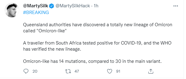 突发!昆士兰发现一例澳大利亚首例全新Omicron谱系!暂时被称为 “拟Omicron”! 图文来源:couriermail 原文链接