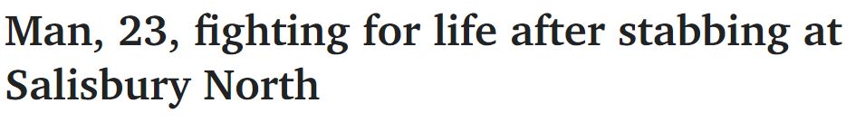 今天上午,在阿德莱德北部发生的一起事件中,一名年轻男子被刺伤,生命受到威胁。嫌疑人正在逃亡中。 此前,周三凌晨在Kilburn发生了一起路边刺伤事件。 上午12点20分左右,两名男子沿着Northcote街行走,一辆 ...