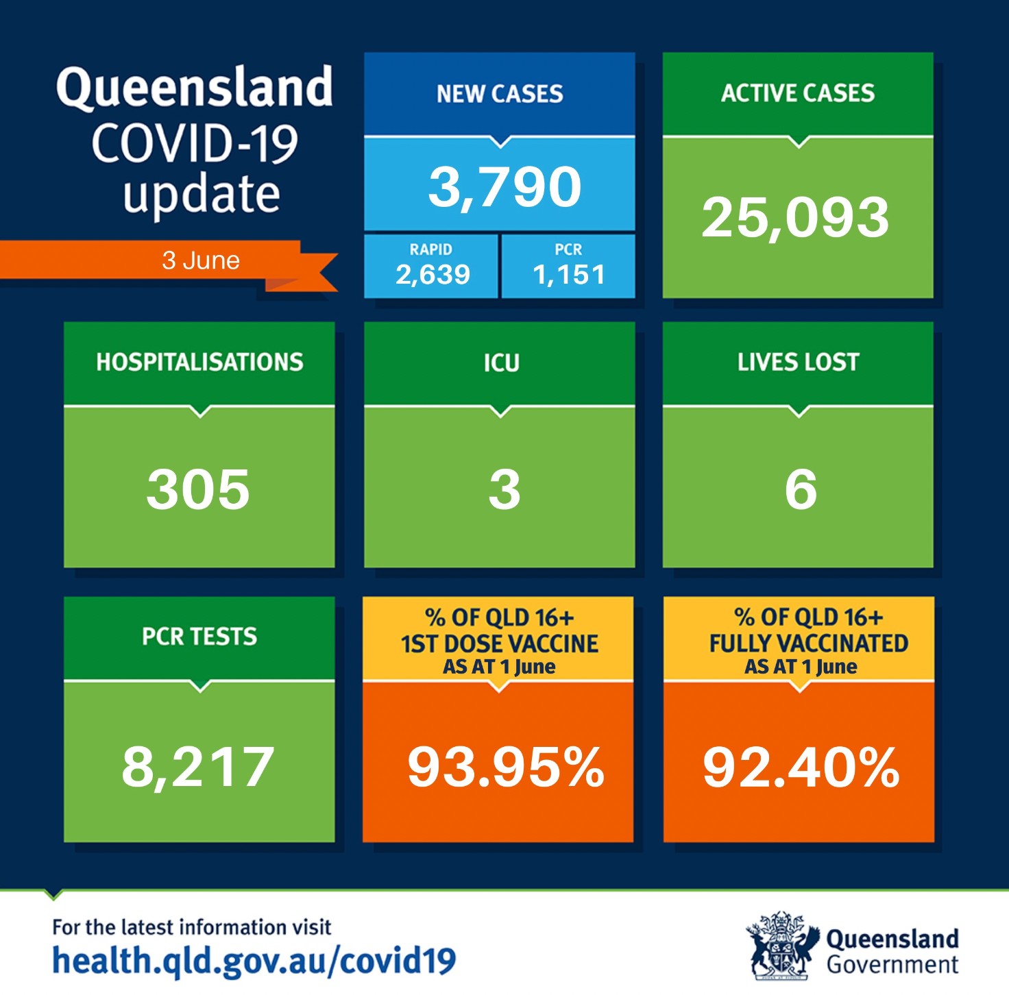 在过去24小时里,昆州新增3790例,6人死亡。 其中PCR检测1151例,快速检测2639例。 目前全州活跃病例为25093例。 共有305人因covid住院,3人住在重症监护室。 全州16岁以上人群两针接种率为92.40%。 ...