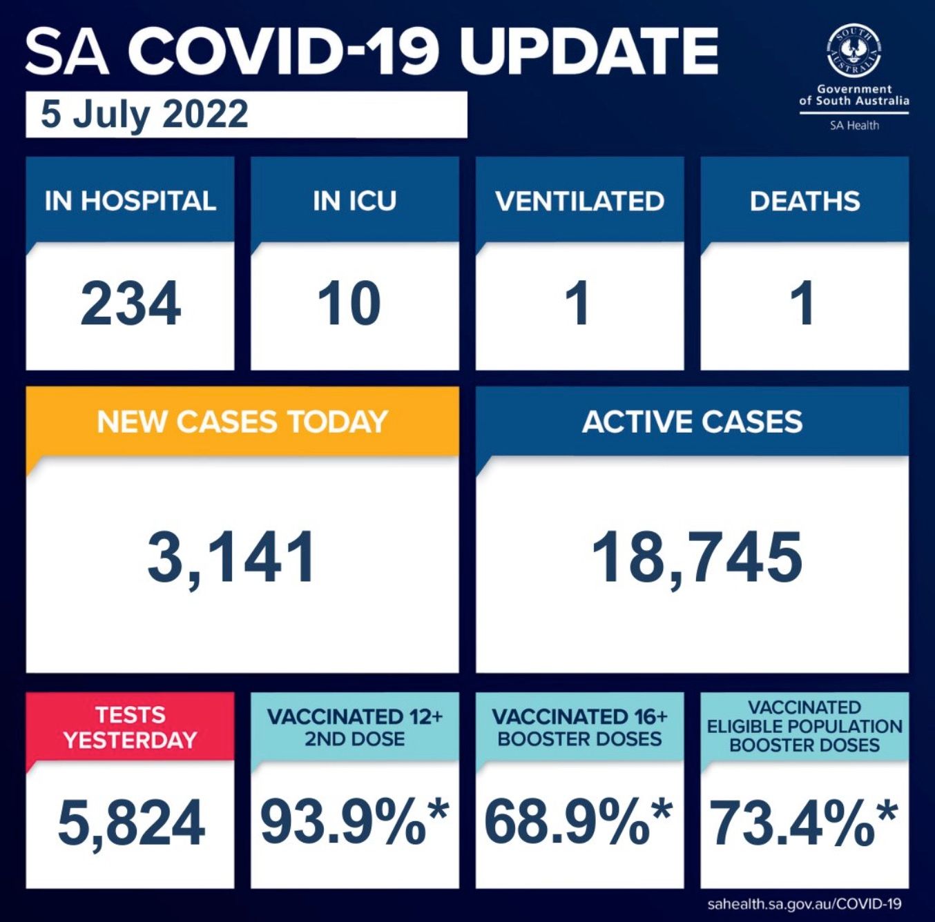 在过去的24小时里,南澳新增3141例,1人死亡! 目前南澳有18,745个活跃病例。 南澳卫生部证实,有1人死亡,是一名70多岁的妇女。 目前南澳有234名COVID-19患者住院,其中10人在重症监护室。 在住院患者中 ...