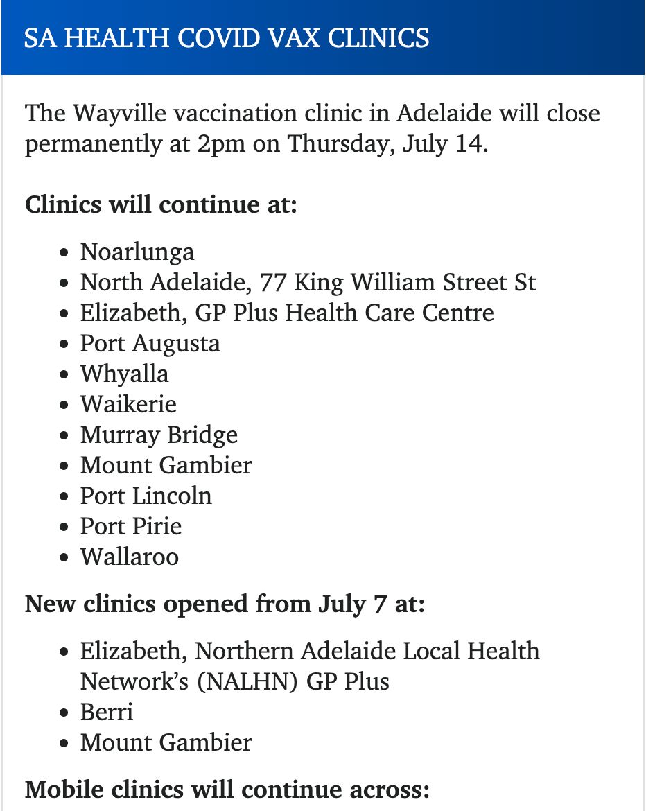 由于周一30岁以上的人可以开始接种第四针疫苗,南澳大规模疫苗接种诊所的队伍已经排到了楼外。 他说,整个一周内,各个偏远地区的疫苗接种诊所也将开放。 “药房已经准备好了,随时可以开始接种。” Spurrier ...
