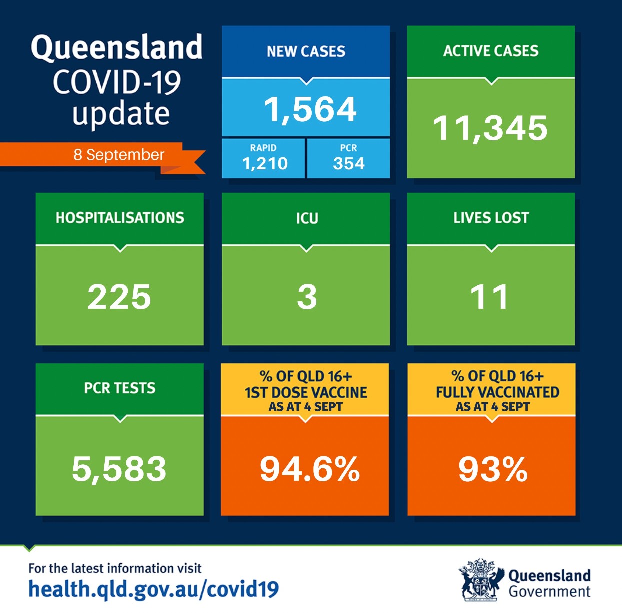 在过去24小时里,昆州新增1564例,11人死亡。 其中PCR检测354例,快速检测1210例。 目前全州活跃病例为11345例。 共有225人因covid住院,3人住在重症监护室。 全州16岁以上人群两针接种率为93%。 图文来 ...