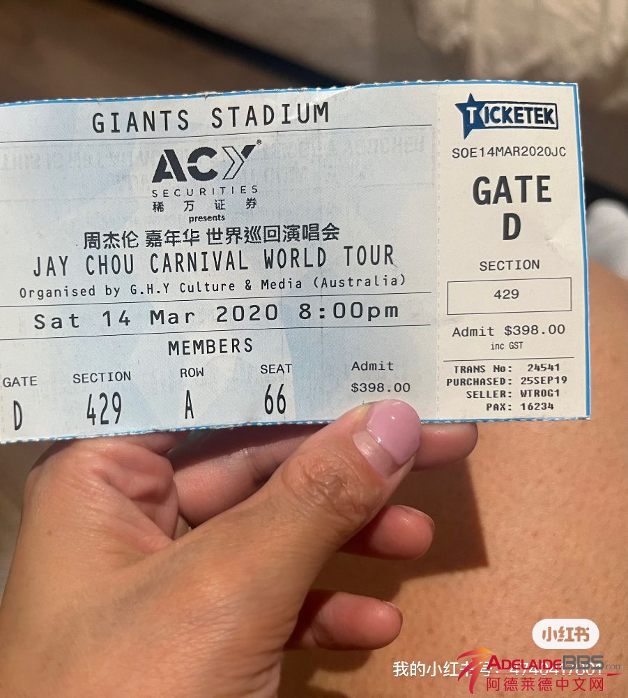 出一张周杰伦2023悉尼嘉年华演唱会门票一张,原价398,现在350出 请短信 0431476012