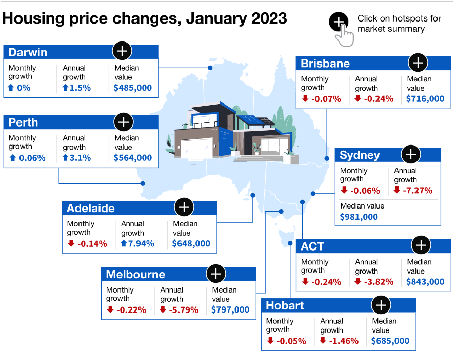 一份关于澳大利亚房价的新报告预测,在利率飙升的情况下,三个大城市的房价将在2023年出现重大下滑。 周二发布的PropTrack半年度房产市场价值报告显示,悉尼、布里斯班和Canberra的房价今年将暴跌8%至11%,而2022 ...