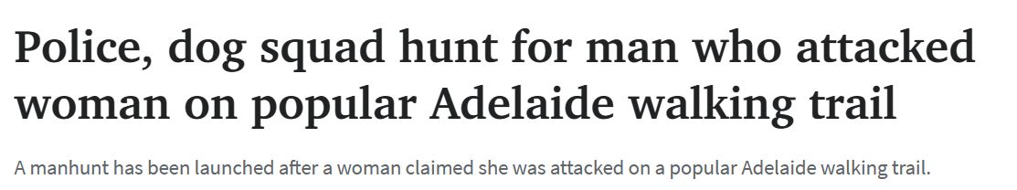 周日下午,一名女子报警称她在阿德莱德热门步行道上遭到袭击。随后,警方展开了追捕行动。 据描述,该嫌疑人是高加索人,身高约163厘米,身材偏瘦,黑色长发扎成马尾。他身穿黑色T恤、太阳镜和 ...