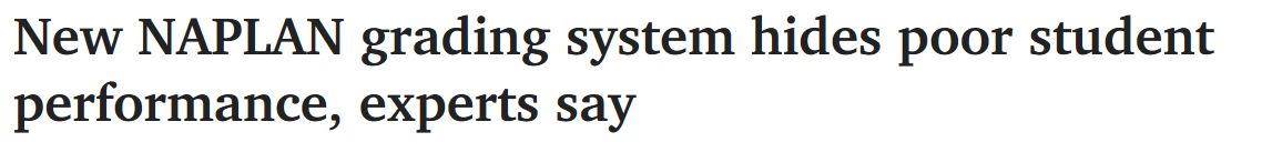 专家表示,在NAPLAN"令人困惑的"的新评分系统下,成绩较差的学生将受到影响,因为该系统会对他们的表现加以粉饰。 "主要的相关人员将不能再使用NAPLAN来追踪学生在这些关键的学习领域的成长,或者 ...