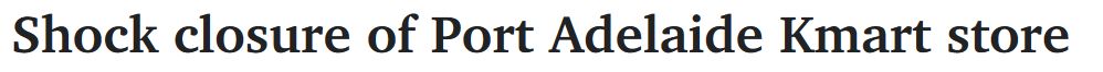 阿德西部地区最受欢迎的Kmart商店之一,即将关门停业,这是其母公司Wesfarmers作出的决定,100名员工将受到此次停业的影响。 发言人透露,公司在进行定期审查后决定关闭该店,该社区居民可以去往附近West L ...