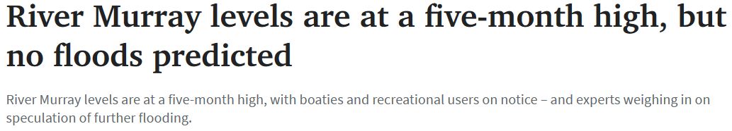 南澳政府已发布关于在River Murray游玩的建议,进行水上娱乐项目的游客应倍加谨慎。 然而,DEW表示,它并没有发布 "洪水预警"。DEW发言人说:"在这种情况下,预计受影响的地区将 ...