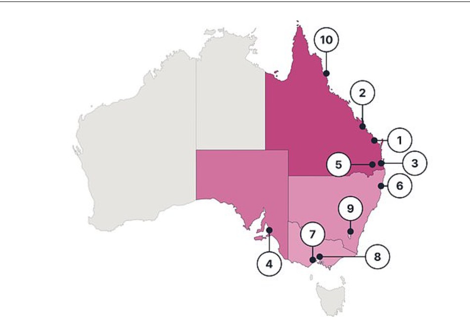 一项新调查揭示了澳大利亚十大"最粗鲁"城市。 昆州北部的Bundaberg以5.81分(满分10分)"荣登"澳大利亚"最粗鲁"城市榜首。 紧随其后的是排名第二的Rockhampton和排名 ...