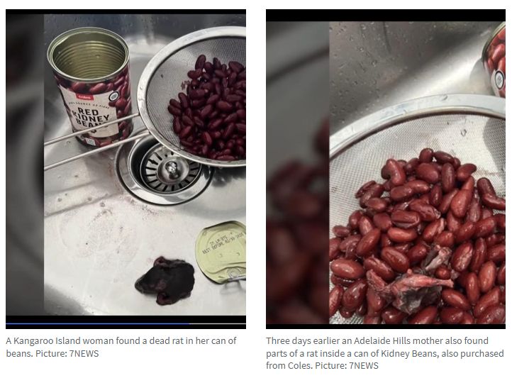 据悉,南澳的又一位顾客在一家大型超市购买的芸豆罐头里发现了一只令人讨厌的老鼠,结果被吓得目瞪口呆。 Kangaroo Island的一名妇女在将芸豆从罐子里过滤出来时发现了这一惊人的发现,并声称老鼠的上半身被淹没 ...
