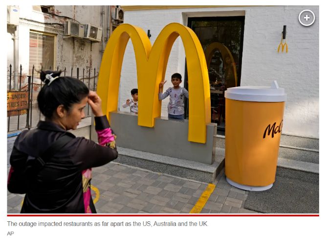 周五,在美国、中国、澳大利亚和其他国家的麦当劳餐厅受到电脑系统故障的影响后,全球各地的麦当劳餐厅被迫暂停在线订单。 这家汉堡巨头在一份声明中说:"我们知道发生了技术故障,影响到了我们的餐厅, ...