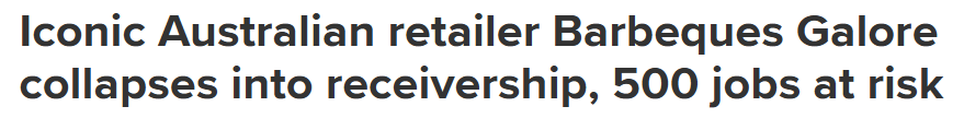 据《9news》报道,澳大利亚老牌零售商Barbeques Galore已进入破产托管程序,数百个工作岗位面临风险。 公司表示,已部分或全额付款的线下及线上订单将按常规履约,除非库存不足无法交付。礼品卡仍可使用,但 ...