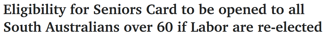 据报道,若工党政府在本月南澳选举中成功连任,预计将有约8万名南澳老年人符合老年卡申领资格。 "事实上许多年过六旬的澳洲人仍在工作,"他说,"他们或因个人选择,或因生活所需继续工作,这本身就是好 ...