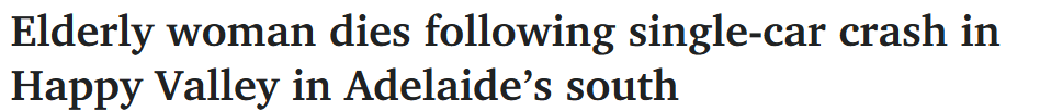 据3月31日报道,阿德南部Happy Valley发生一起车祸,导致一名81岁女子死亡。 周一上午11点40分刚过,应急部门接到报警,称Chandlers Hill Road发生一起单车碰撞事故。 周一下午,警方又处置了一起发生在Nu ...