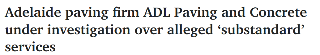 据报道,阿德一家铺装公司因涉嫌提供不合格服务正在接受调查。 在多名客户声称他们向一家无建筑执照经营的企业支付了数千澳元用于有缺陷的工程之后,消费者监管机构公布了该承包商的名称。 ...