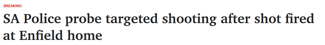 • 阿德北部住宅遭枪击,警方认定为针对性袭击!