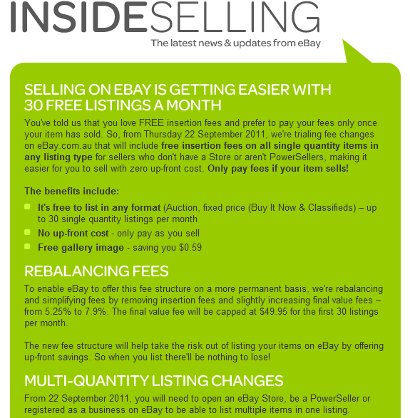 本帖最后由 under-8 于 2011-7-28 12:53 编辑 今天收到ebay发来的新政策调整通知,,从2011年的9月22号开始,任何卖家在ebay上的货物,每月前30个是免费的,无论你是用拍卖的形式或一口价的方式。不过,随之而来 ...