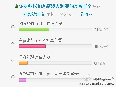 本帖最后由 阿德莱德电台 于 2011-9-18 14:43 编辑 地址:http://vote.weibo.com/vid=957364 欢迎关注微博阿德莱德电台:http://weibo.com/adelaidenow
