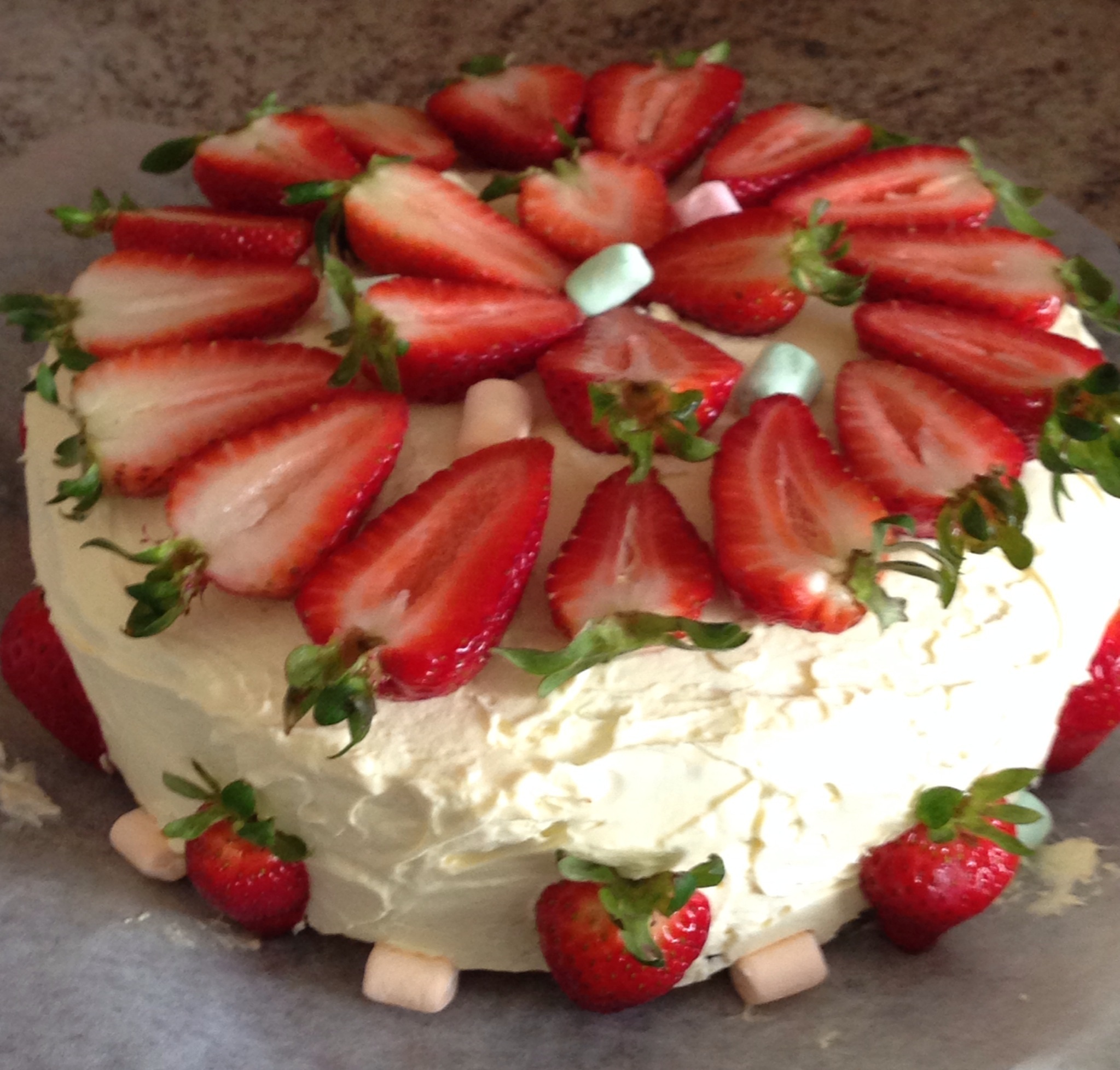 自娱自乐的蛋糕:草莓是周末去摘的,恨甜啊,确实和超市的不一样:)