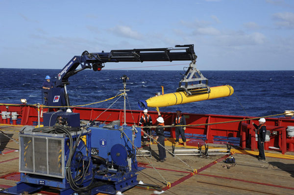 [提要] 澳大利亚“海洋之盾”号停止使用拖曳声波定位仪,启用了“蓝鳍金枪鱼”自主水下航行器进行深海搜寻。由于其下潜超出15000英尺(4500米)的最大深度,“金枪鱼”的内置安全设备被启动,从而在作业6小时 ...