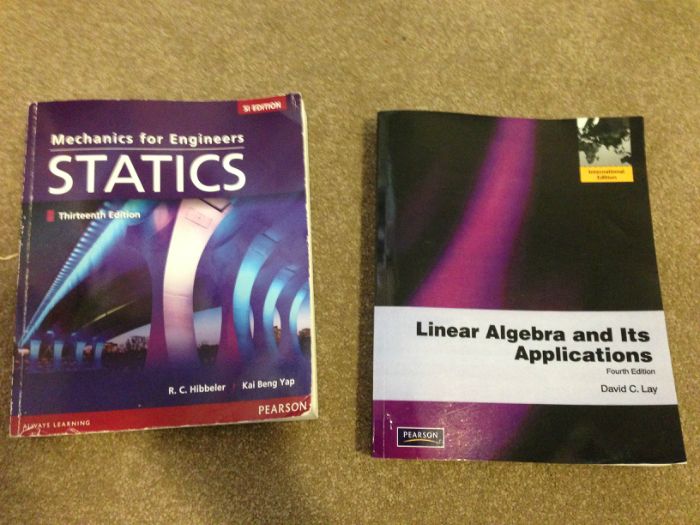 卖阿大土木工程first year的linear algebra和statics 课本,如图 algebra 和 statics都是一本80,有兴趣的请联系0410322755(text only)Anson