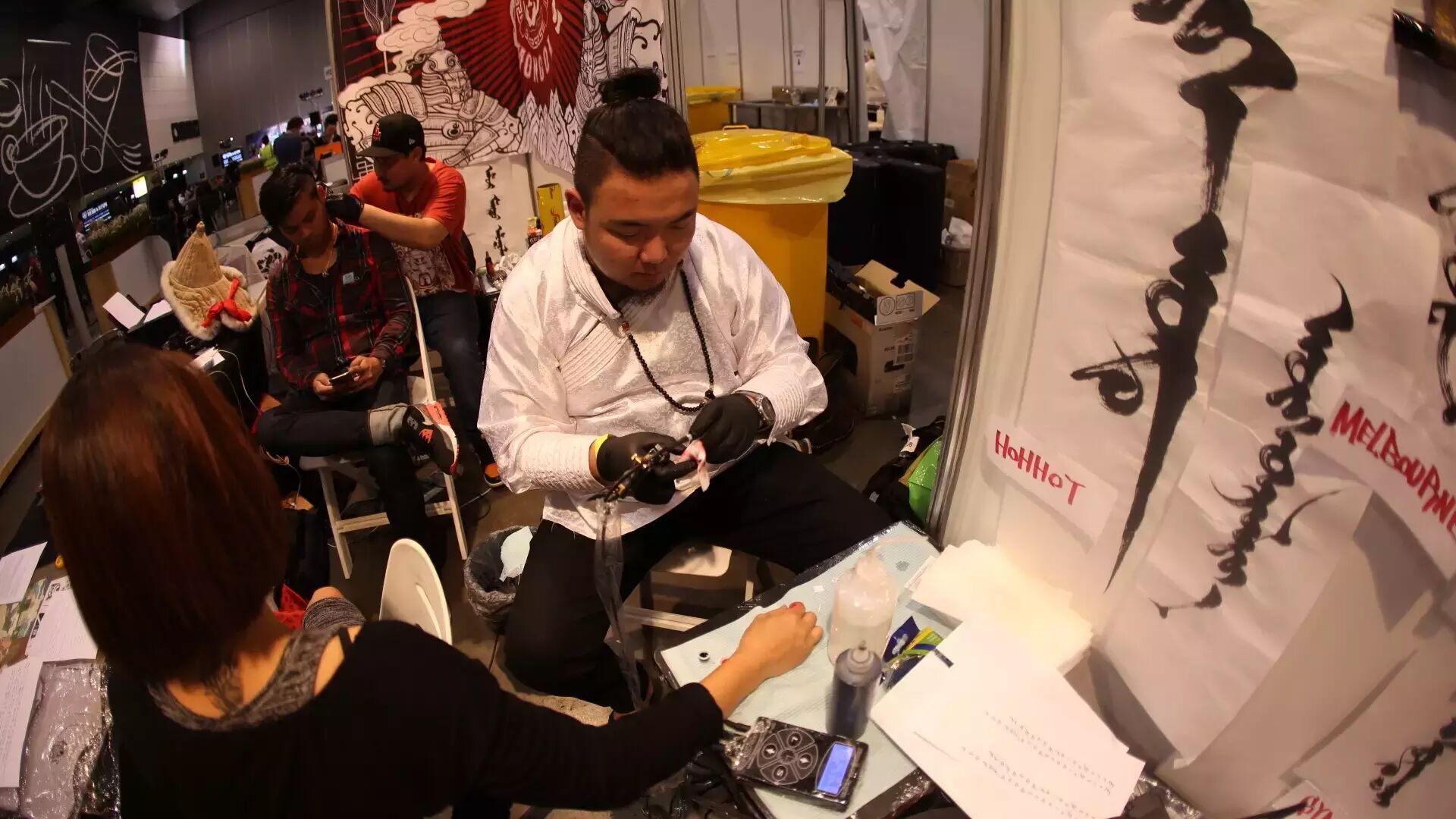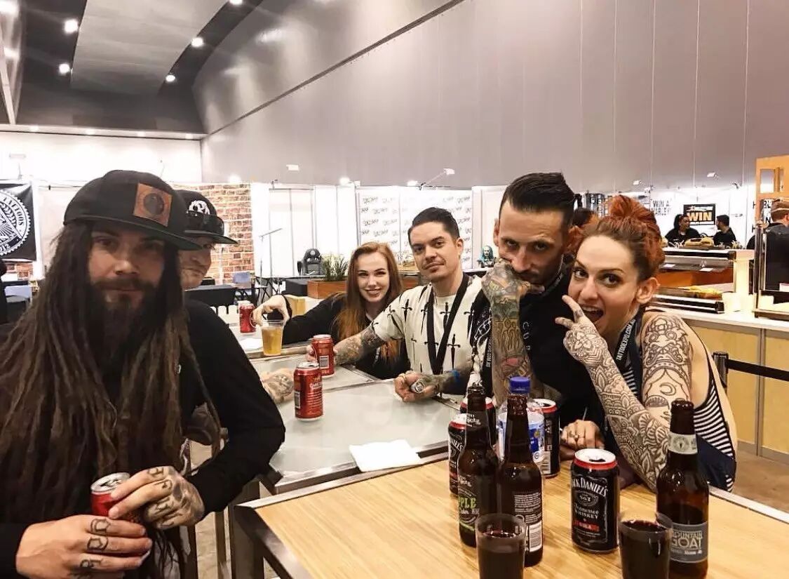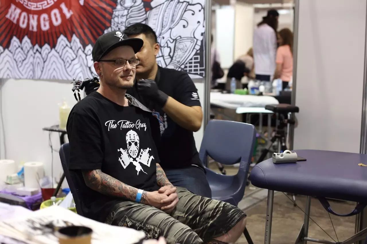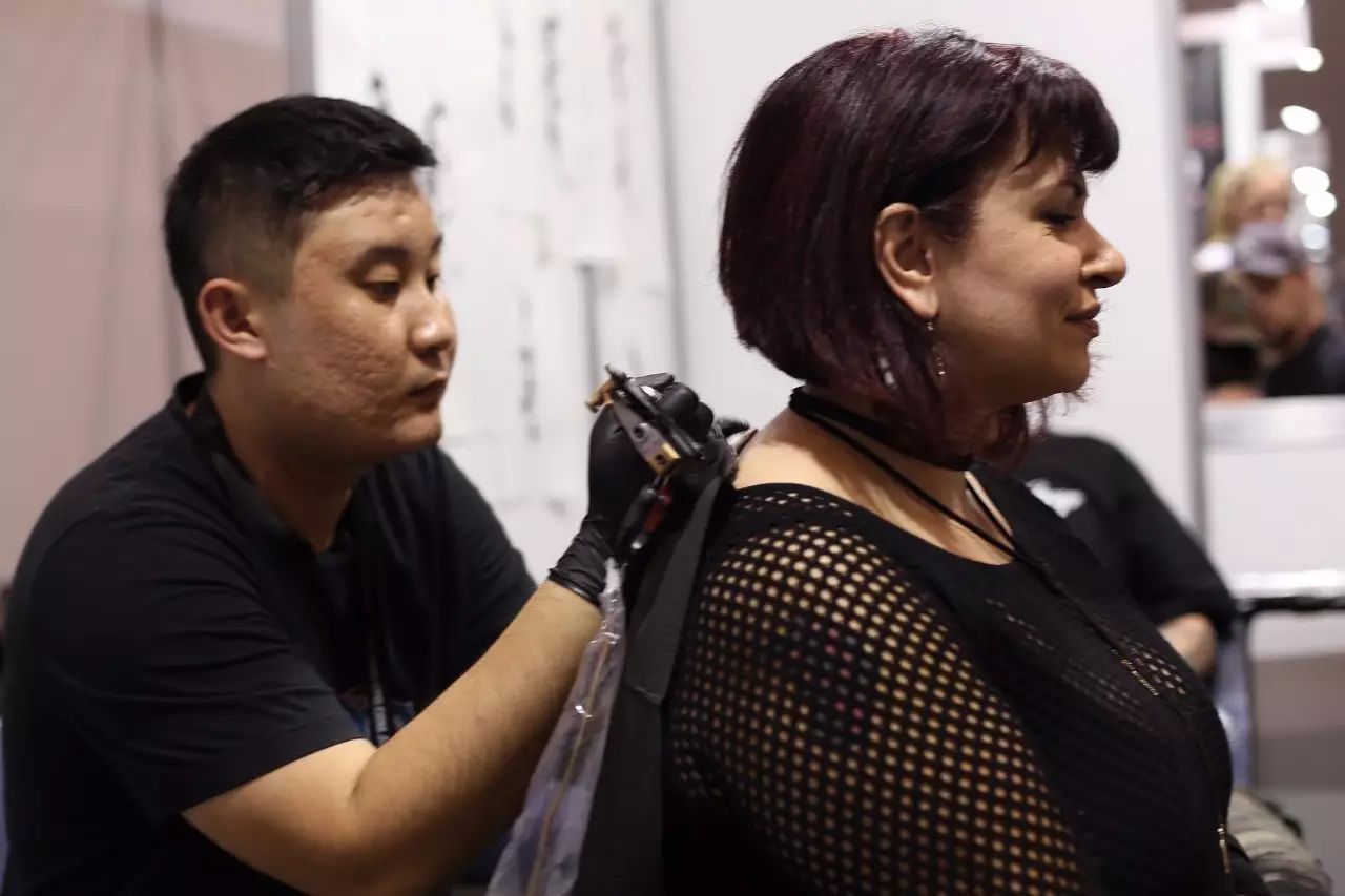 到展会现场与熟识的刺青师再次相聚