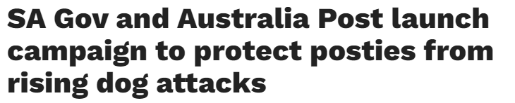 标题: 邮递员遭狗咬伤事件频发,南澳政府和澳洲邮政发起保护活动!
